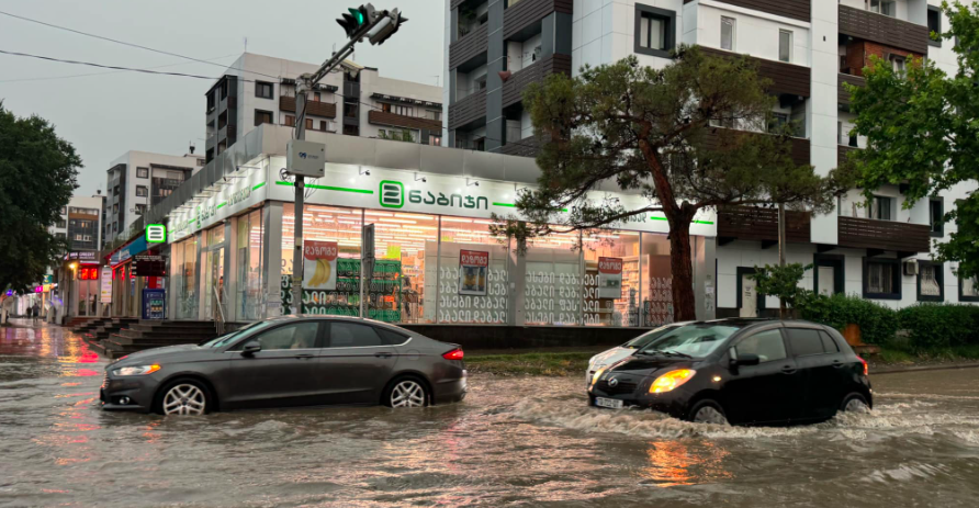 ძლიერი წვიმის შედეგად, რუსთავში რამდენიმე ქუჩა დაიტბორა