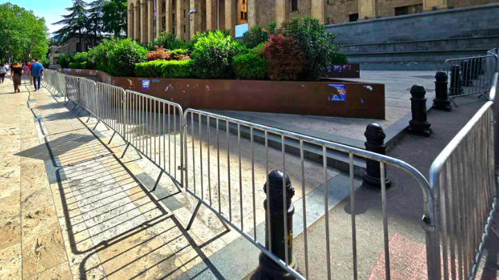 პარლამენტის წინ ტერიტორია რკინის ჯებირებით შემოღობეს