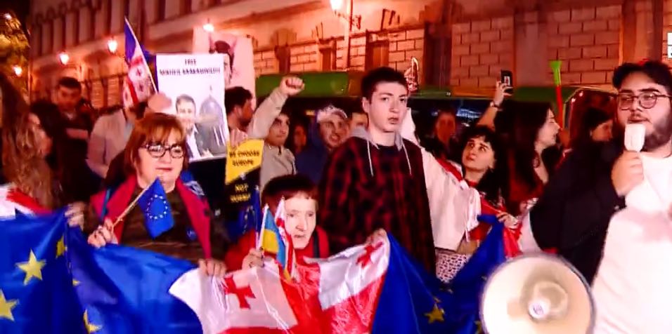 „არა რუსულ კანონს, კი ევროპას“ - აქციაზე შეკრებილი მოქალაქეები მსვლელობით ევროპის მოედანზე მივიდნენ