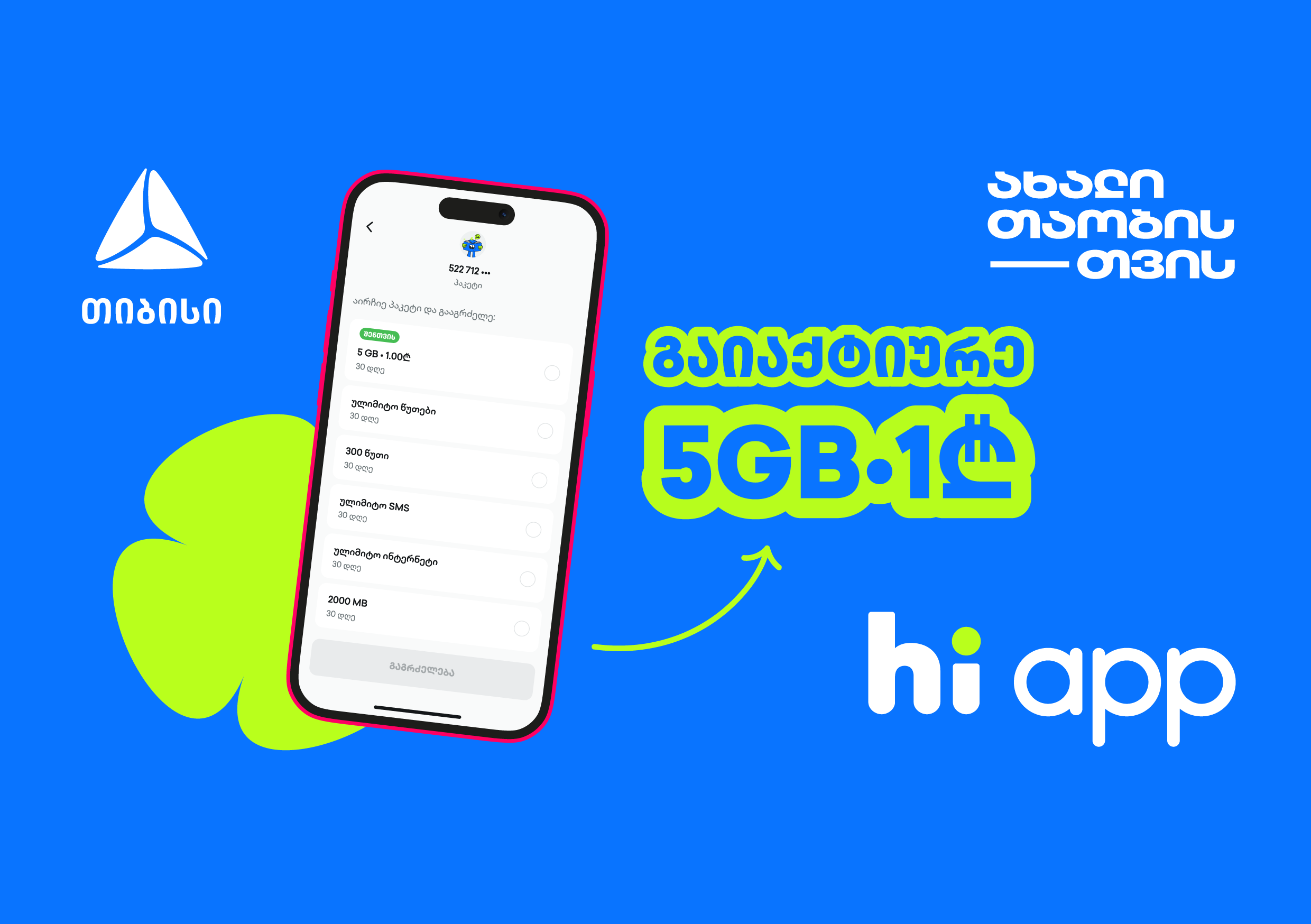 5 გბ 1 ლარად - შეთავაზება hi app-ის მომხმარებლებისთვის
