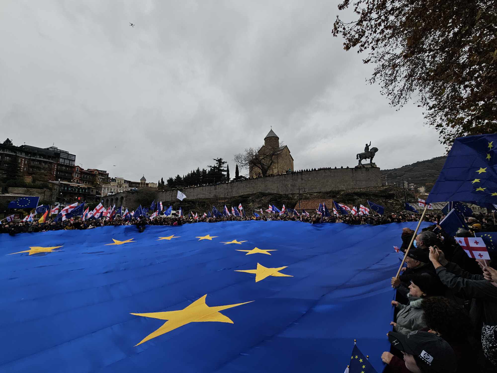 „შენი ხმა ევროკავშირს“ - ევროპის მოედანზე ევროკავშირის დროშა გაშალეს