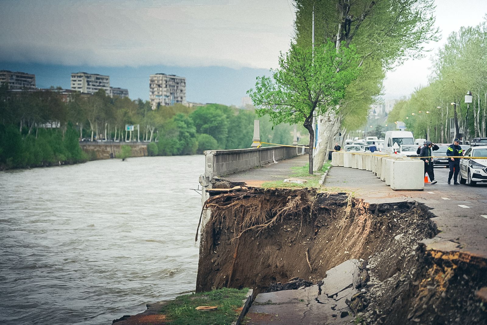 მტკვრის მარცხენა სანაპიროზე გზის ნაწილი ჩამოინგრა