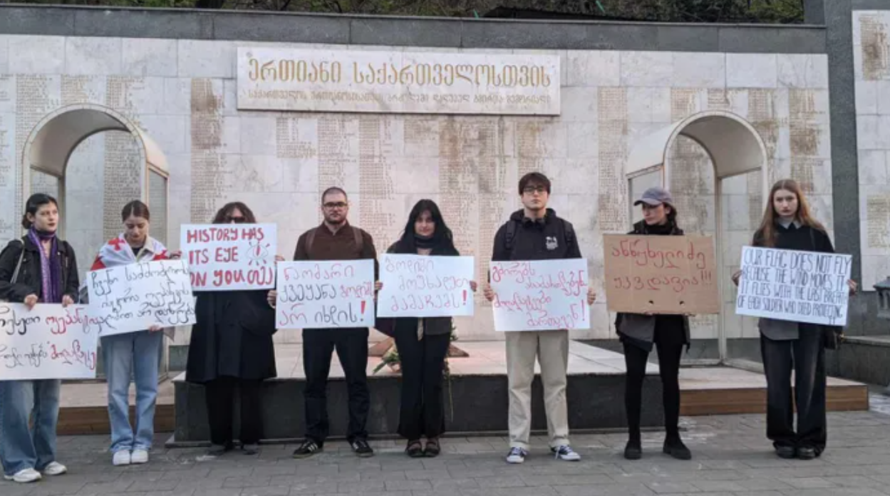 დაღუპულ გმირთა მემორიალთან ახალგაზრდების საპროტესტო აქცია მიმდინარეობს