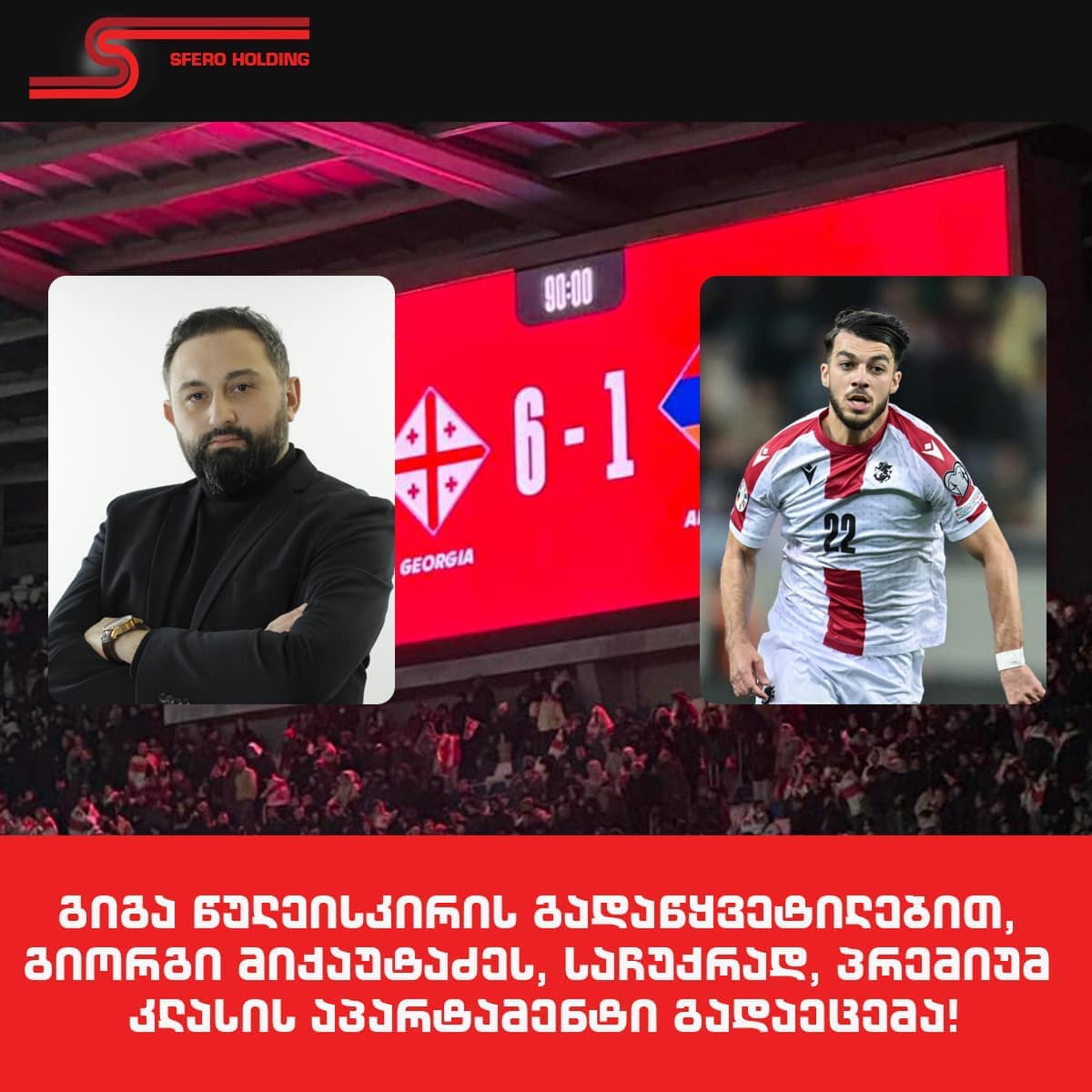 „სფერო ჰოლდინგის“ დამფუძნებლის, გიგა წულეისკირის გადაწყვეტილებით, გიორგი მიქაუტაძეს, გრიგოლეთში, საჩუქრად, პრემიუმ კლასის აპარტამენტი გადაეცემა
