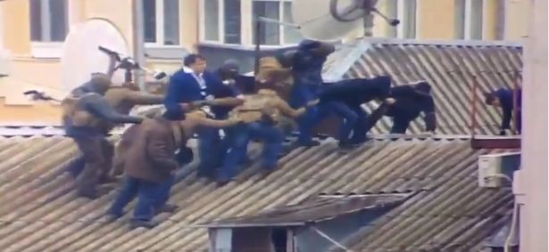 როგორ ჩამოჰყავს სპეცრაზმს სააკაშვილი შენობის სახურავიდან (ვიდეო)
