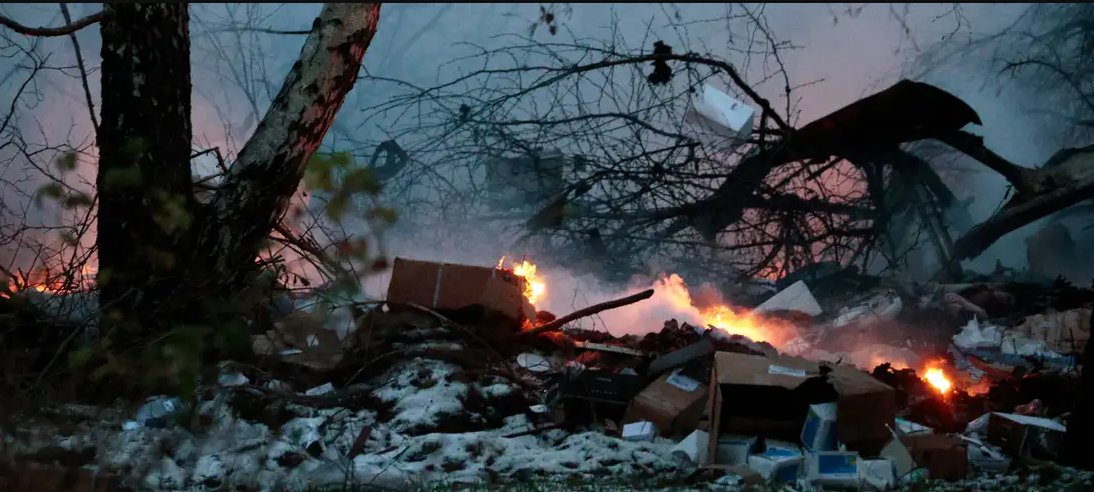 ვილნიუსში საცხოვრებელ კორპუსთან DHL-ის სატვირთო თვითმფრინავი ჩამოვარდა