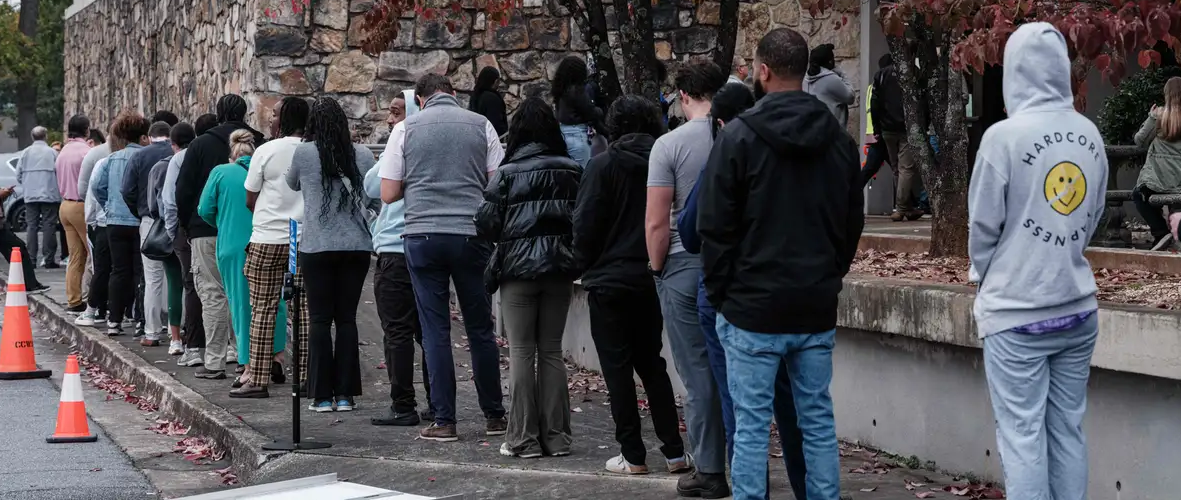 შეერთებული შტატებში საარჩევნო უბნების წინ ხმის მიცემის მსურველთა რიგებია