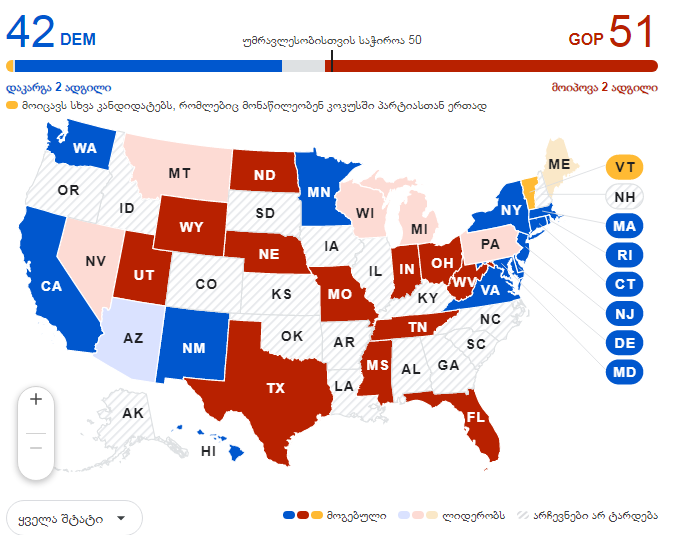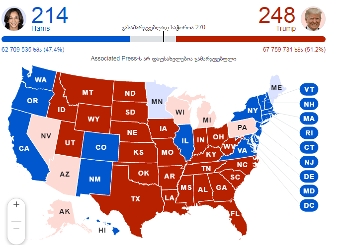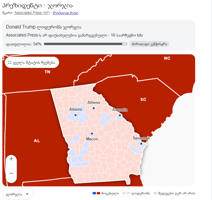 ტრამპმა მოიგო მერყევი შტატი ჯორჯია - CNN და NBC გამოთვლები