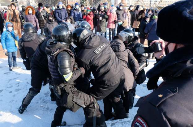 ნავალნის გათავისუფლების მოთხოვნით გამართულ აქციებზე დემონსტრანტების დაკავება დაიწყო (ვიდეო)