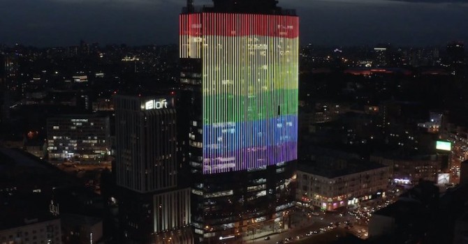 კიევში სავაჭრო ცენტრ „გულივერის“ შენობა ერთი კვირის განმავლობაში LGBT დროშის ფერებში განათდება