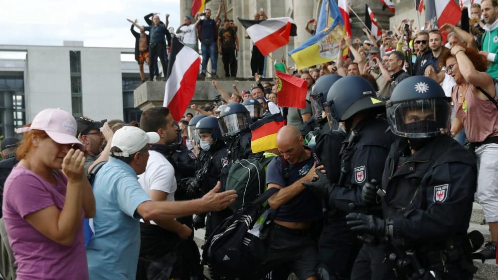 ანტი-კორონას აქციის დროს მომიტინგეები რაიხსტაგის შენობაში შეიჭრნენ