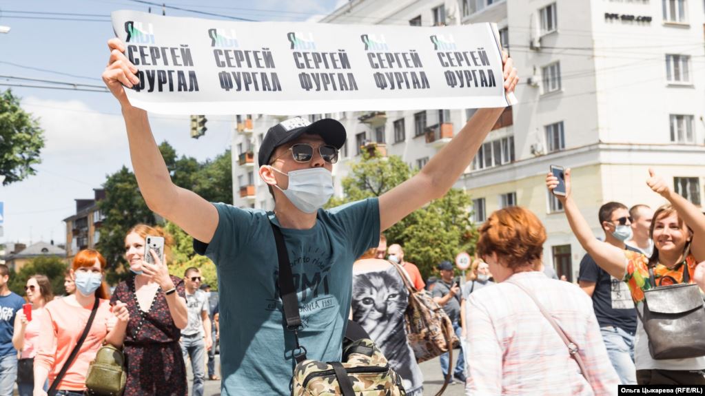 ხაბაროვსკში, დაპატიმრებული გუბერნატორის მხარდასაჭერად, ათი ათასამდე ადამიანმა აქცია გამართა