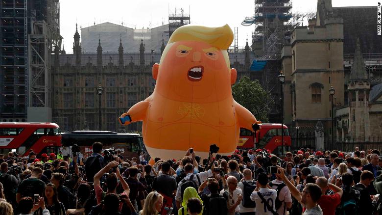 ბრიტანელების პროტესტი - ლონდონის თავზე „ბავშვი ტრამპის“ 6-მეტრიანი ბუშტი გაუშვეს