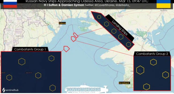 14 რუსული ხომალდი, მათ შორის სადესანტო ხომალდები, ოდესისკენ მიემართება