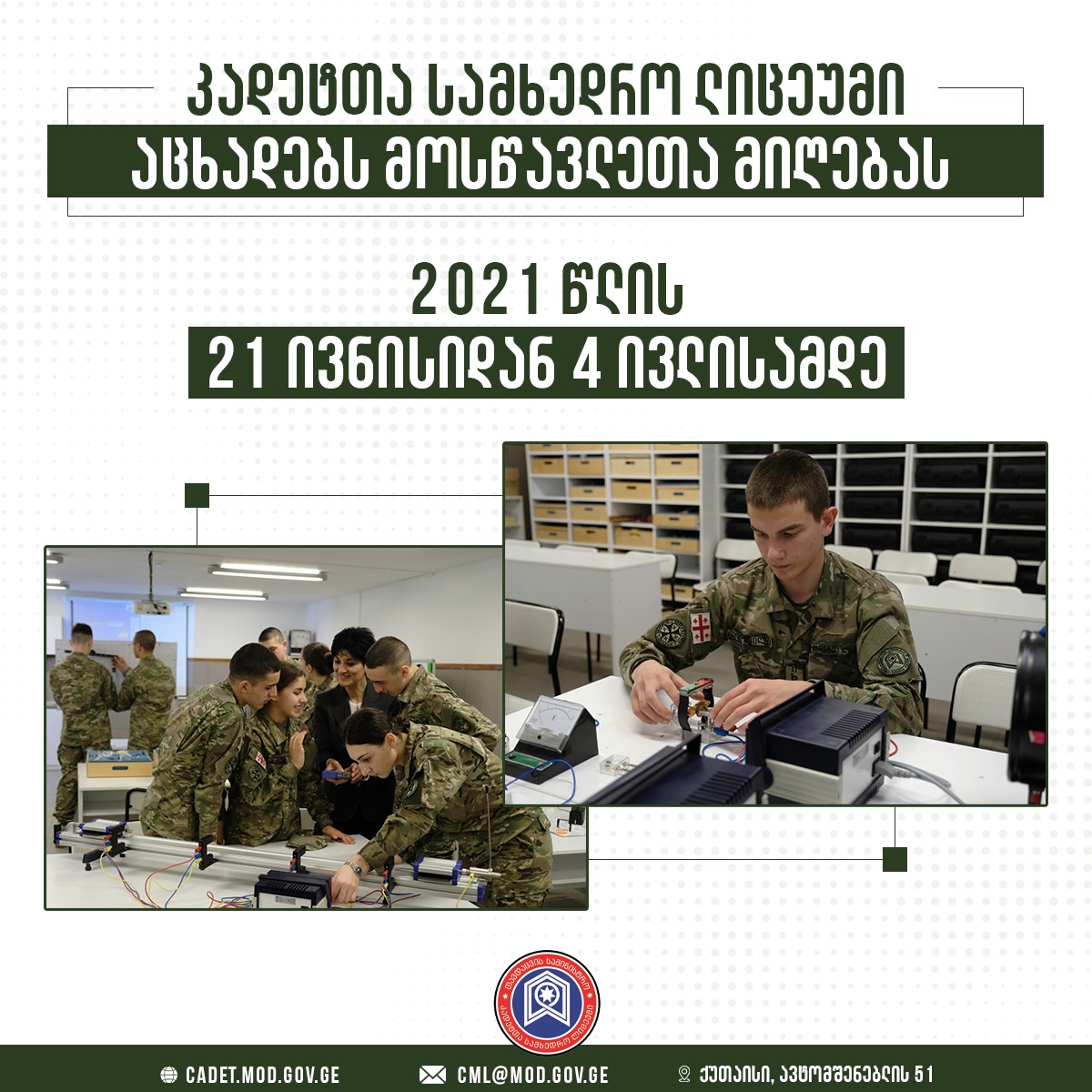 გენერალ გიორგი კვინიტაძის სახელობის კადეტთა სამხედრო ლიცეუმი აცხადებს მოსწავლეთა მიღებას 2021-2022 სასწავლო წლისათვის