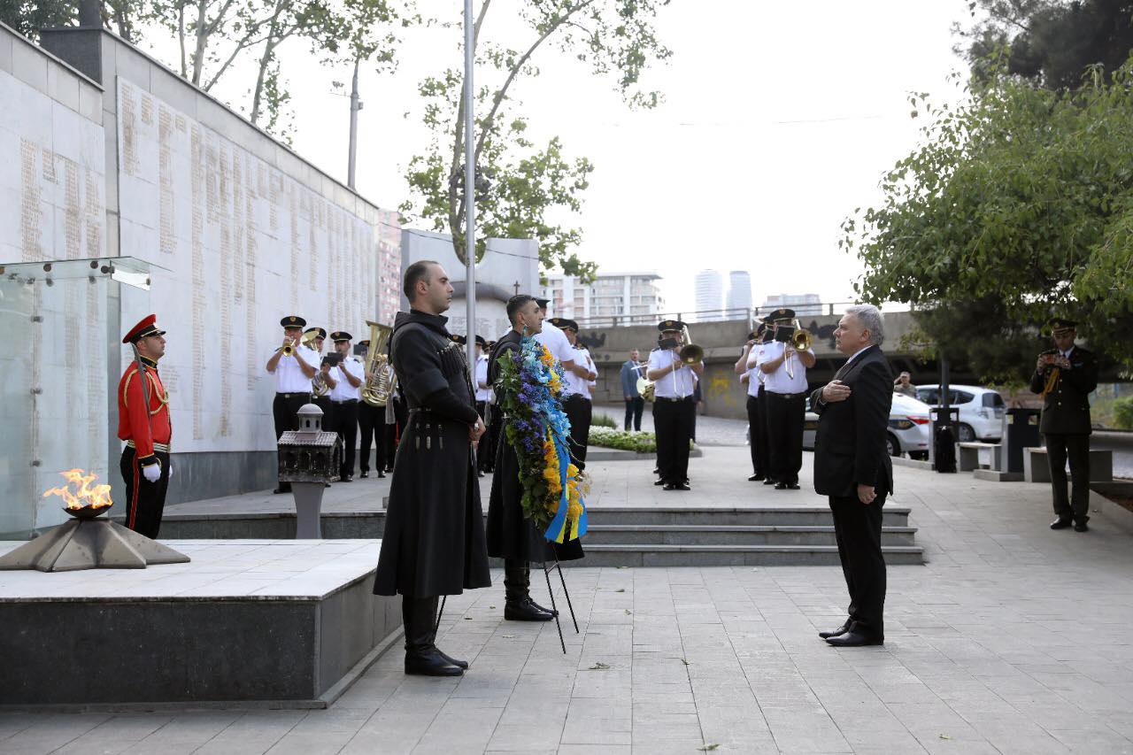 უკრაინის თავდაცვის მინისტრმა გმირთა მემორიალი გვირგვინით შეამკო