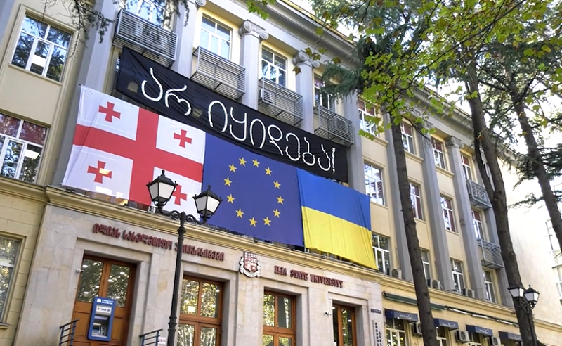 ილიას სახელმწიფო უნივერსიტეტთან საპროტესტო აქცია მიმდინარეობს