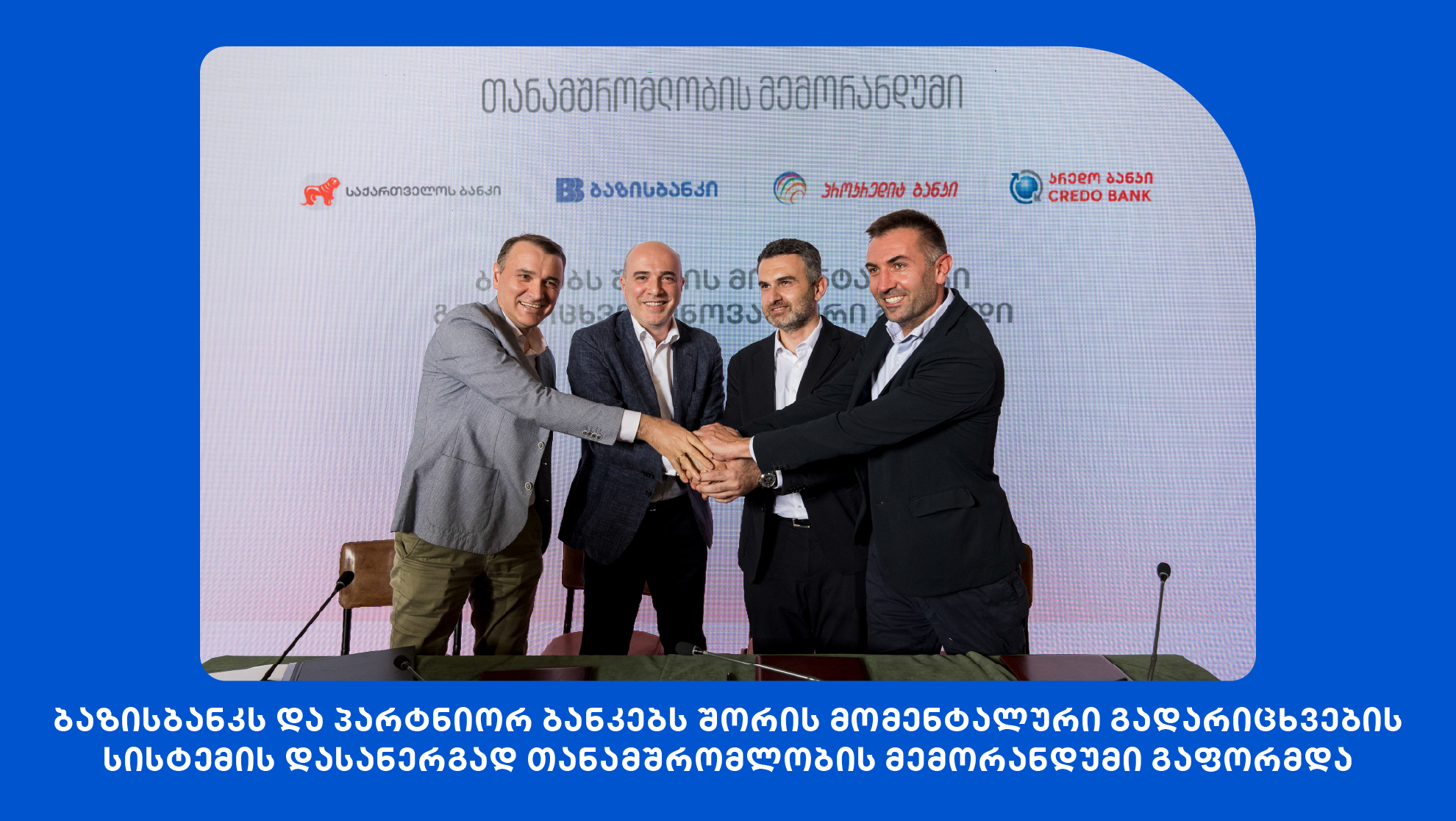საქართველოს ბანკსა და პარტნიორ ბანკებს შორის მომენტალური გადარიცხვების მეთოდის დასანერგად თანამშრომლობის მემორანდუმი გაფორმდა