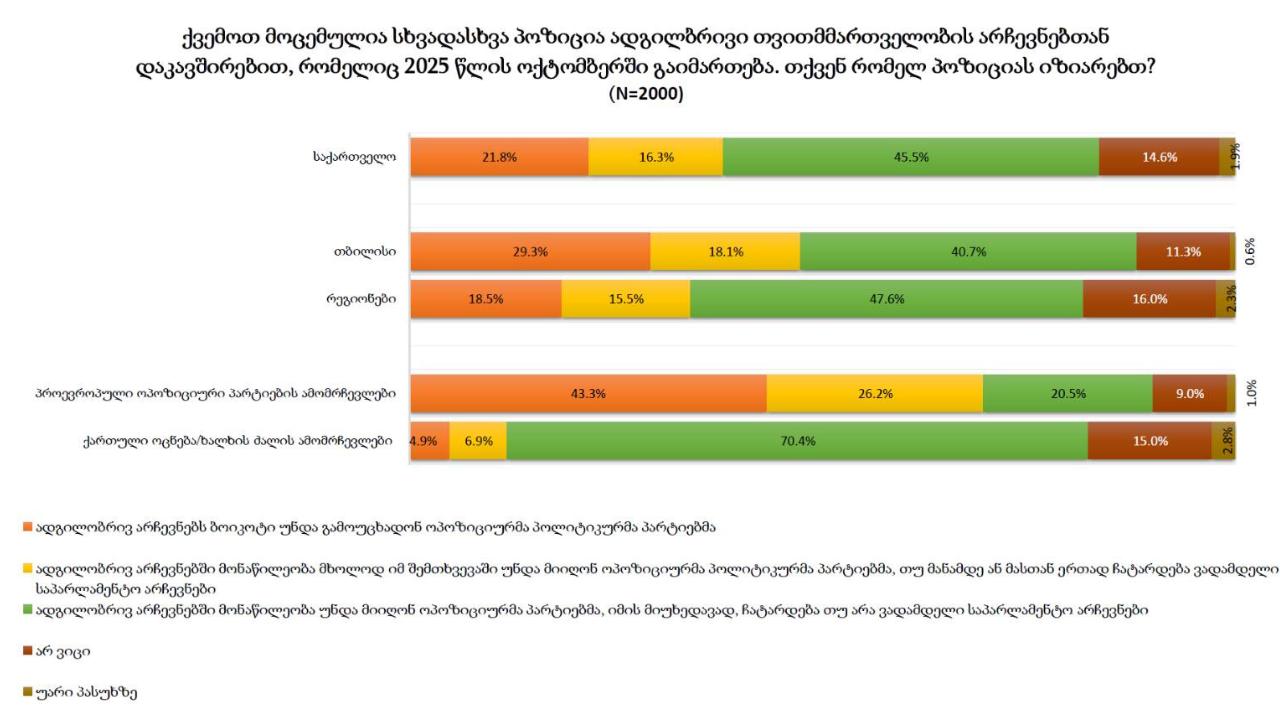 კვლევა — ოპოზიციის ამომრჩევლების უმეტესობა მუნიციპალური არჩევნების ბოიკოტს ემხრობა