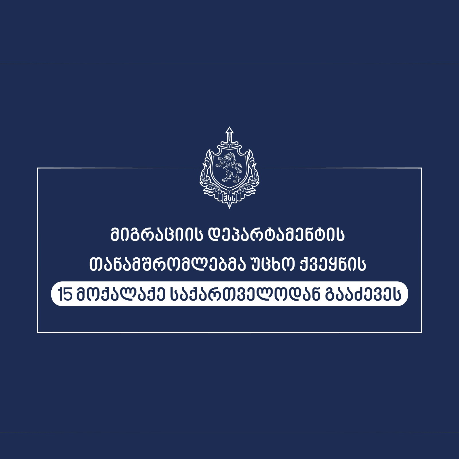 მიგრაციის დეპარტამენტის თანამშრომლებმა უცხო ქვეყნის 15 მოქალაქე საქართველოდან გააძევეს