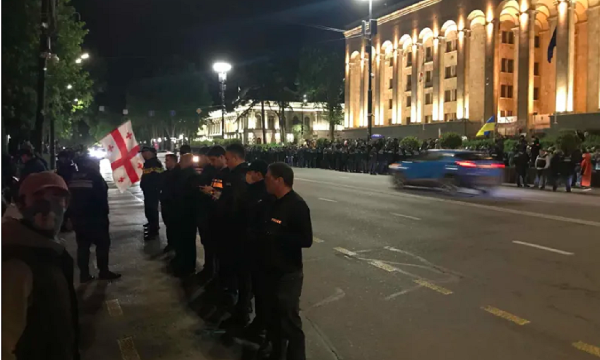რუსთაველის გამზირზე პოლიციის კორდონია - აქციის მონაწილეების ცნობით, გზის გადაკეტვის საშუალებას არ აძლევენ