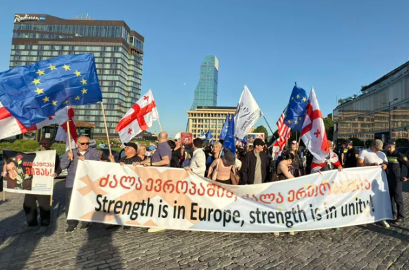 ევროპის მოედანზე აქცია - „ძალა ევროპაშია, ძალა ერთობაშია“ მიმდინარეობს