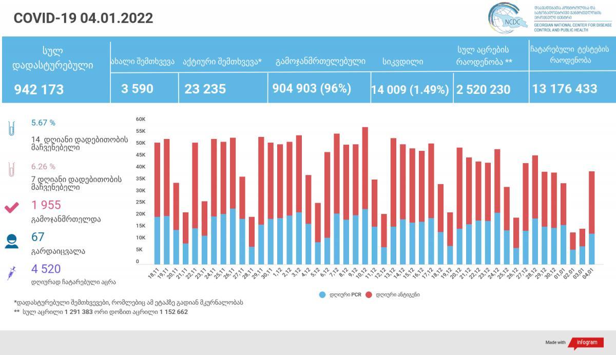 „3 იანვრის მდგომარეობით ლაბორატორიულად დადასტურებულია „ომიკრონის“ 148 შემთხვევა“, - ნათქვამია ინფორმაციაში.