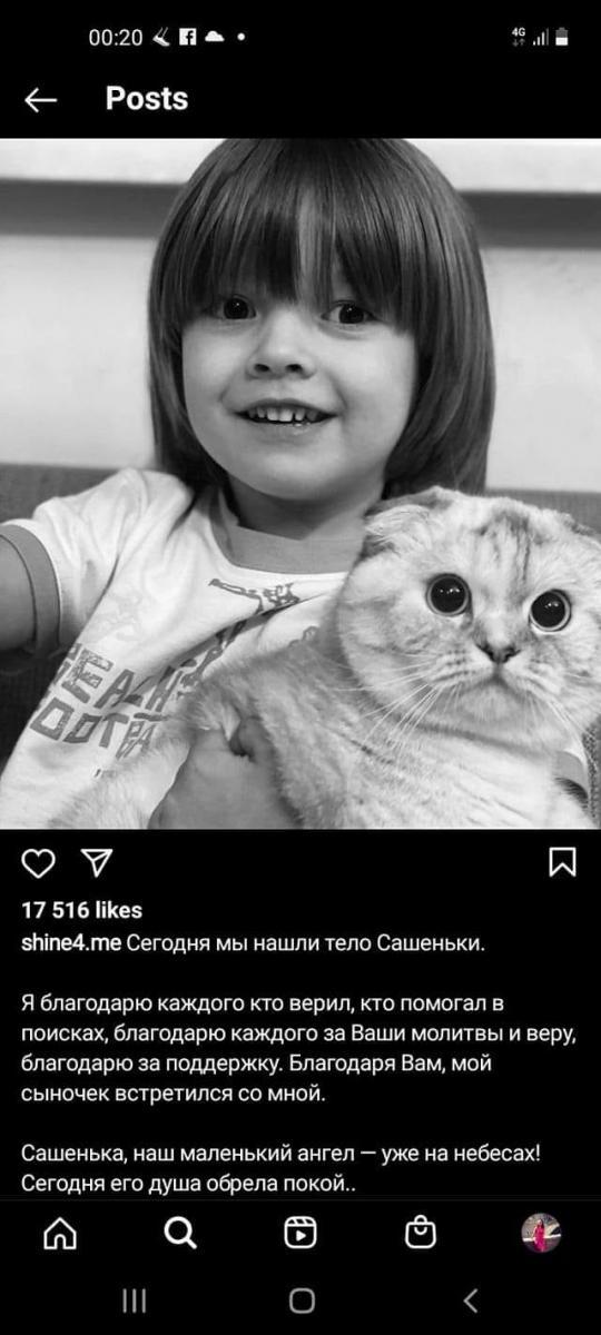საშენკა, ჩვენი პატარა ანგელოზი უკვე ზეცაშია. მისმა სულმა დღეს მოიპოვა სიმშვიდე“ - წერს საშას დედა თავის ინსტაგრამ გვერდზე.