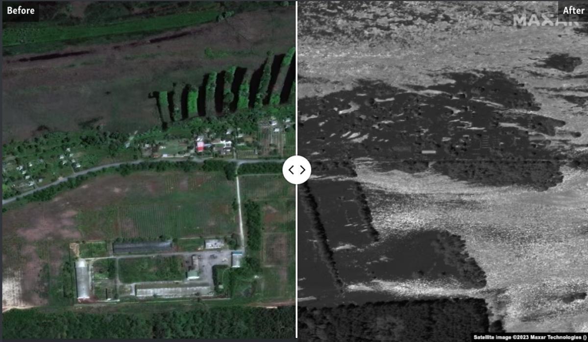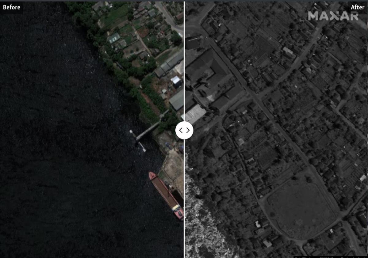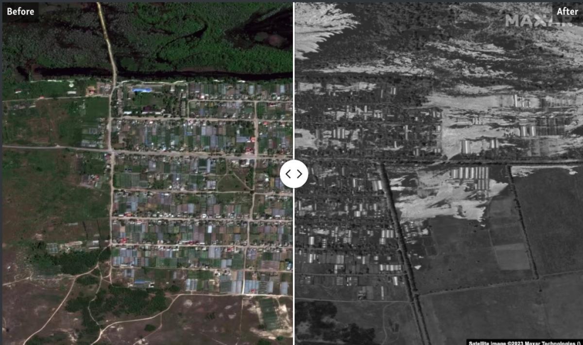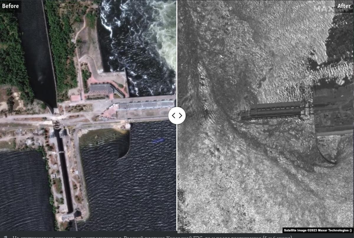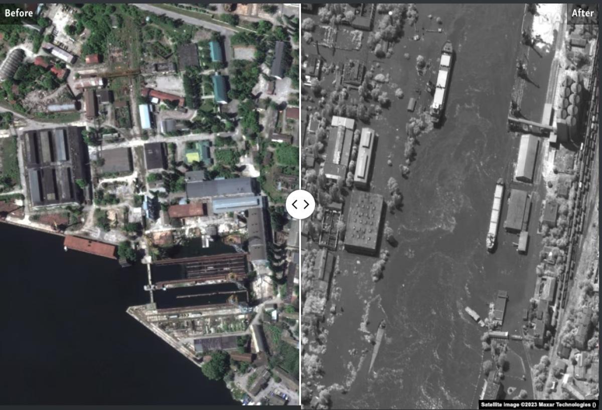კახოვსკაიას ჰიდროელექტრო კაშხლის განადგურებამდე და მის შემდეგ გადაღებული სატელიტური სურათები აჩვენებს მის მიერ გამოწვეული წყალდიდობის კატასტროფულ შედეგებს. კაშხალმა გადაკეტა დნეპერი სამხრეთ უკრაინაში, ხერსონის ოლქში.