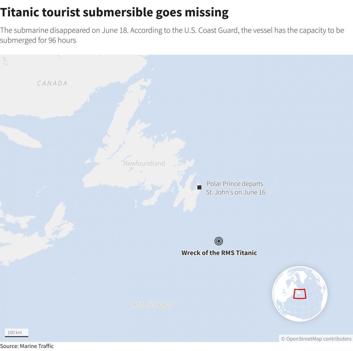 ბორტზე 5 ადამიანი - 58 წლის ბრიტანელი მილიარდერი ჰემიშ ჰარდინგი, 48 წლის პაკისტანელი ბიზნესმენი შახზადა დავუდი და მისი 19 წლის შვილი სულეიმანი, 61 წლის სტოკტონ რაში, OceanGate-ის დამფუძნებელი და 77 წლის ფრანგი მკვლევარი პოლ-ანრი ნარჟოლე იმყოფებოდნენ. "ტიტანის" სამძებრო ღონისძიებებიდან რამდენიმე დღის შემდეგ წყალქვეშა ნავის გაუჩინარების მიზეზად აფეთქება დასახელდა და ბორტზე მყოფი ხუთივე პირი დაღუპულად გამოცხადდა.
