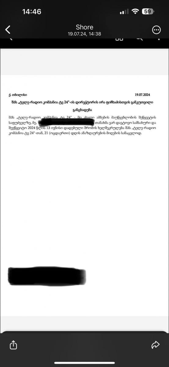 ნანა ლეჟავა - TV24-ში დასაქმებულებს კუთვნილი ხელფასის სანცვლოდ, სამსახურიდან საკუთარი ნებით წასვლას აიძულებენ