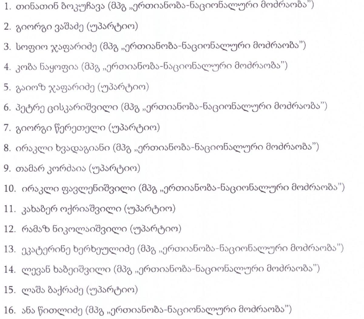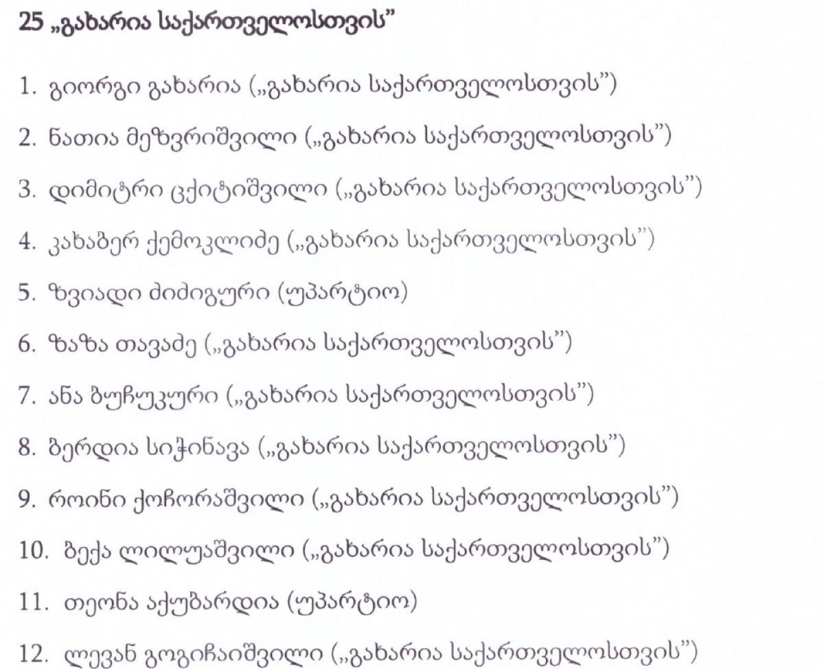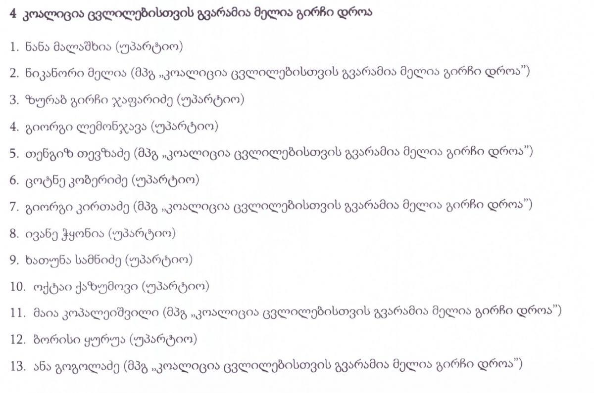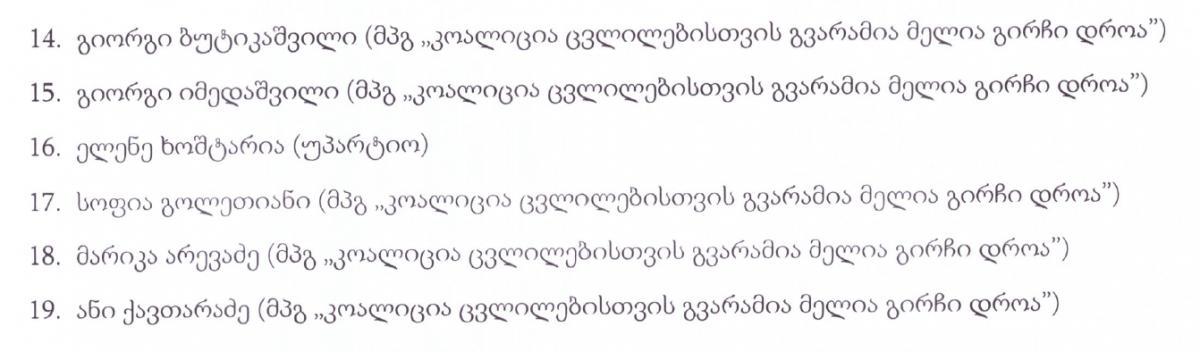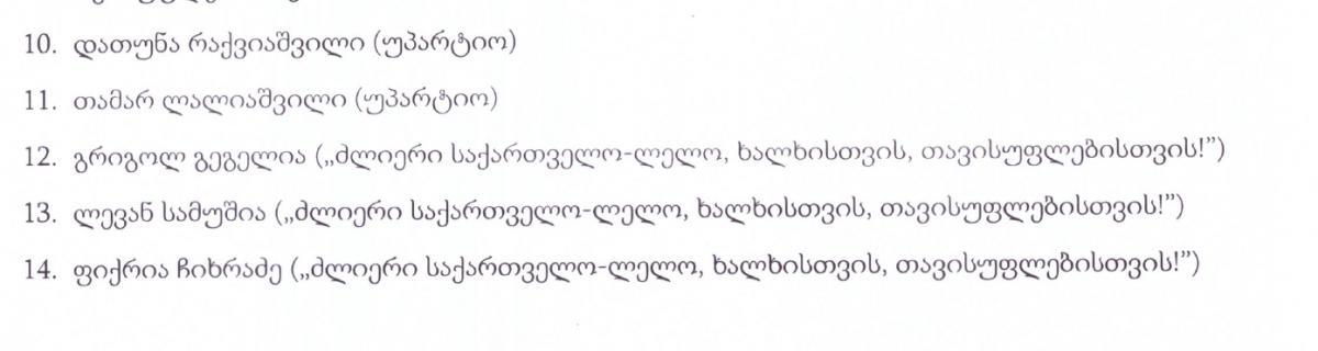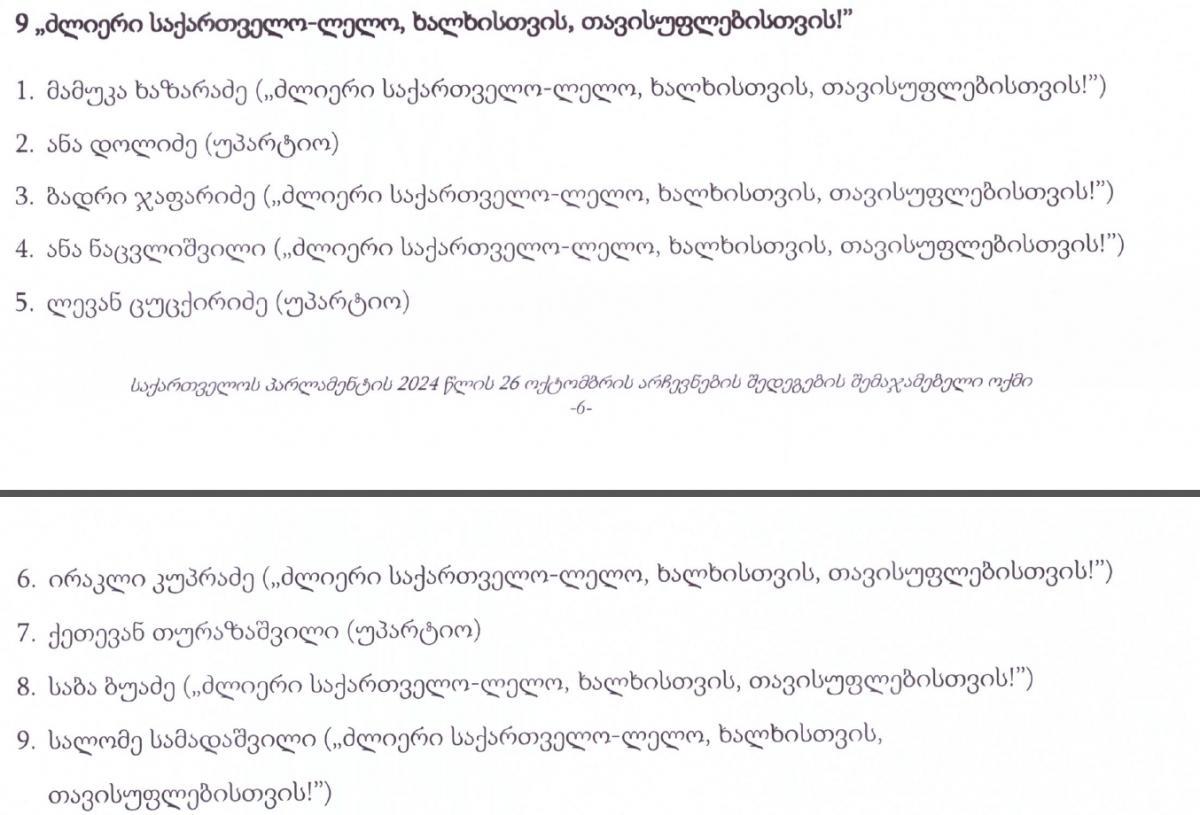 ცესკოს შემაჯამებელი ოქმის მიხედვით, პარლამენტში 4 ოპოზიციური პარტია გავიდა - დეპუტატების სია