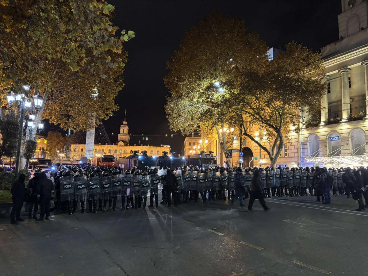 პოლიციამ თბილისში, რუსთაველის გამზირზე, სადაც საპროტესტო აქცია განახლდა, წყლის ჭავლის გამოყენება დაიწყო.