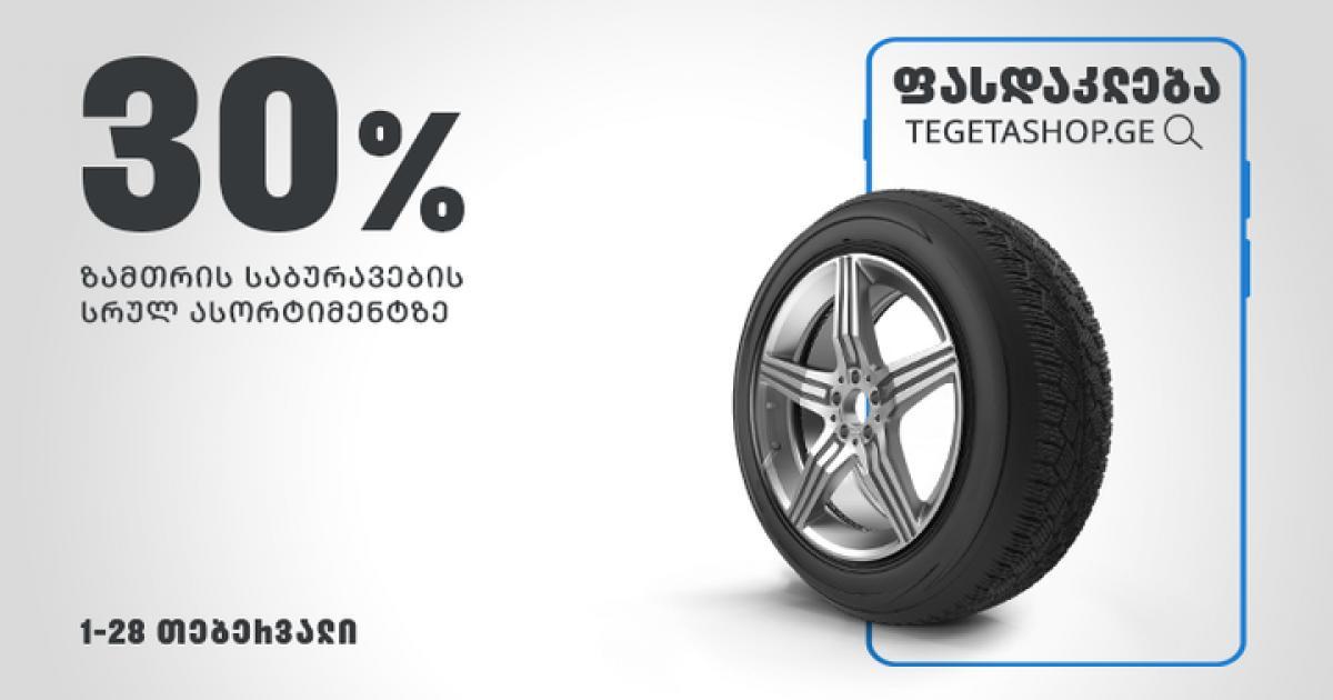 თებერვლის ბოლომდე ყველა ფილიალში, ზამთრის საბურავის შეძენის შემთხვევაში, მომხმარებელი მიიღებს 50%-იან ქეშბექს, თანხა ქულების სახით თეგეტა ქარდზე დაბრუნდება. რაც შეეხება Tegeta Shop-ს, ზამთრის საბურავების სრულ ასორტიმენტზე 30%-იანი ფასდაკლება მოქმედებს.