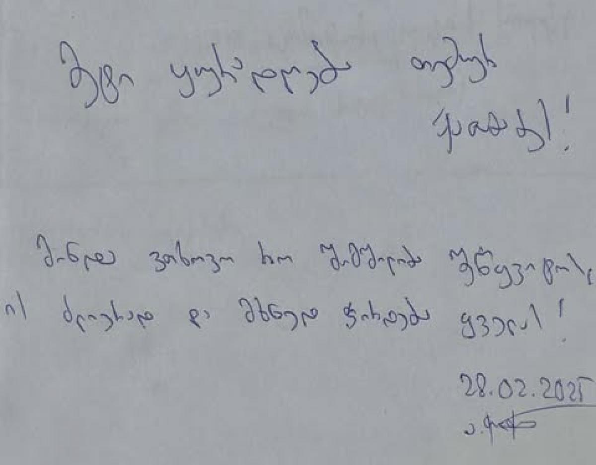 ანდრო ჭიჭინაძე საპატიმროდან წერილს აგზავნის და შიმშილობის შეწყვეტას სთხოვს თემურ ქათამაძეს