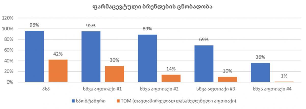 2025 წელს ჩატარებული ფარმაციის ბაზრის სამომხმარებლო კვლევის მიხედვით, „PSP ფარმა” ბაზრის ლიდერია. კომპანია ლიდერის პოზიციას 2013 წლიდან ინარჩუნებს და მომხმარებლისთვის #1 არჩევანს წარმოადგენს. უპირველეს ყოვლისა, PSP-ს ლიდერის პოზიცია აქვს სააფთიაქო ბაზარზე ბრენდების ცნობადობის პარამეტრით. აფთიაქის ხსენებაზე მომხმარებელი პირველ რიგში PSP-ს ასახელებს; ასევე, მომხმარებელი ენდობა და რეკომენდაციას უწევს PSP-ს. სააფთიაქო ქსელებს შორის მომხმარებლის 96%-ს PSP ახსენდება სპონტანურად. PSP ლიდერია ნაცნობი აფთიაქების ჩამოთვლისას პირველ რიგში დასახელების თვალსაზრისითაც (TOM - Top of Mind 42%).
