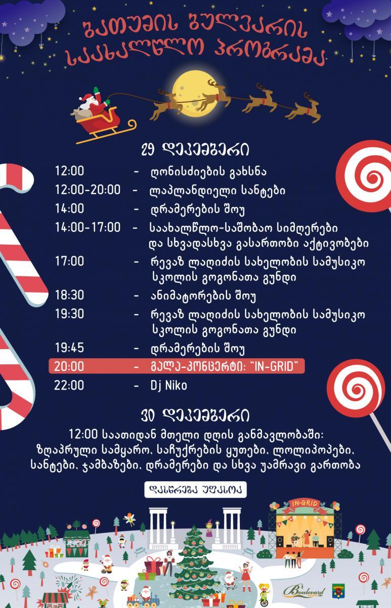 ბათუმის ბულვარში საახალწლო ბაზრობა და ინგრიდის კონცერტი გაიმართება