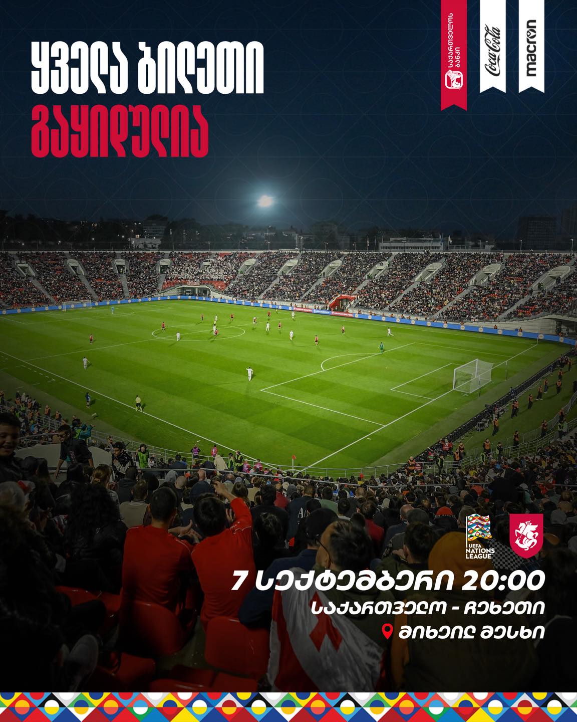 საქართველო-ჩეხეთის მატჩის ბილეთების გაყიდვა დაიწყო