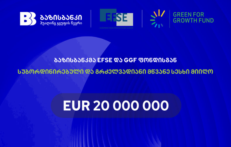 ბაზისბანკმა EFSE და GGF ფონდისგან 20 000 000 ევროს სუბორდინირებული და გრძელვადიანი მწვანე სესხი მიიღო