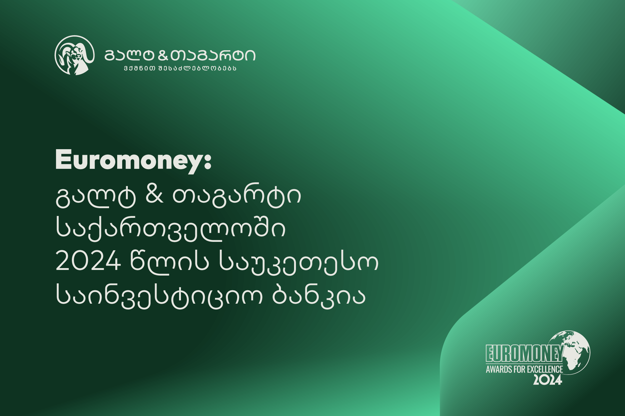 Euromoney-იმ „გალტ & თაგარტი“ საქართველოში 2024 წლის საუკეთესო საინვესტიციო ბანკად დაასახელა
