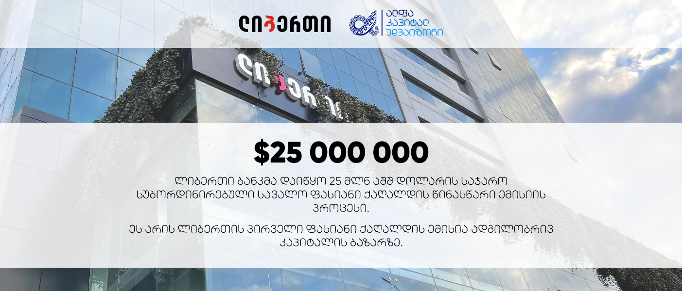 სს „ლიბერთი ბანკი“ პირველ საჯარო ობლიგაციას განათავსებს