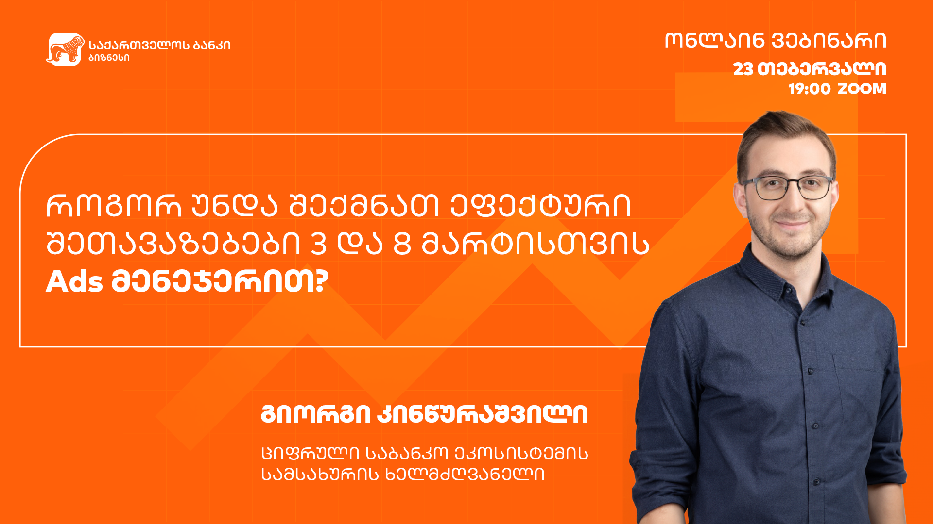 „საქართველოს ბანკი“ ბიზნეს მომხმარებლებისთვის Ads მენეჯერის ვებინარს გამართავს