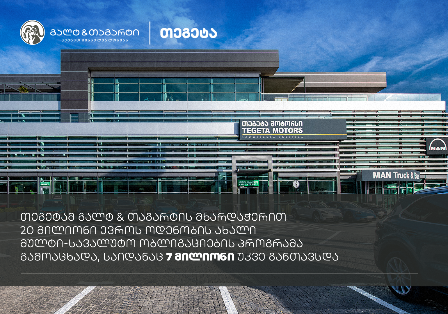 „თეგეტამ“ „გალტ & თაგარტის“ მხარდაჭერით, ახალი, 20 მილიონი ევროს მულტი-სავალუტო ობლიგაციების პროგრამის ფარგლებში 7 მილიონი უკვე განათავსა