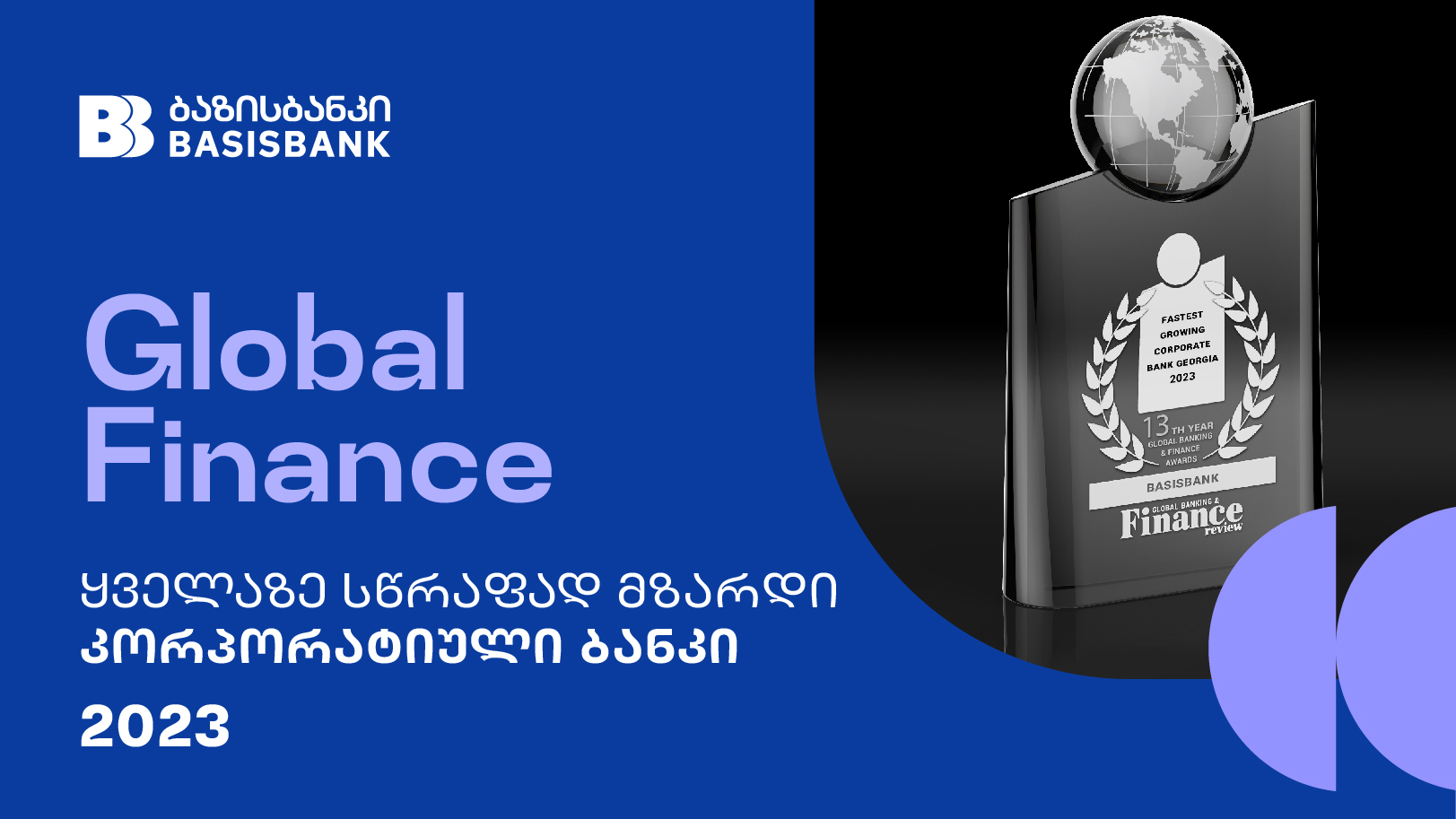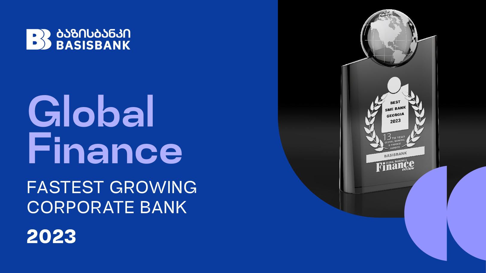 2023 წლის ყველაზე სწრაფად მზარდი კორპორატიული ბანკი საქართველოში - ბაზისბანკი Global Finance-ის რჩეული გახდა