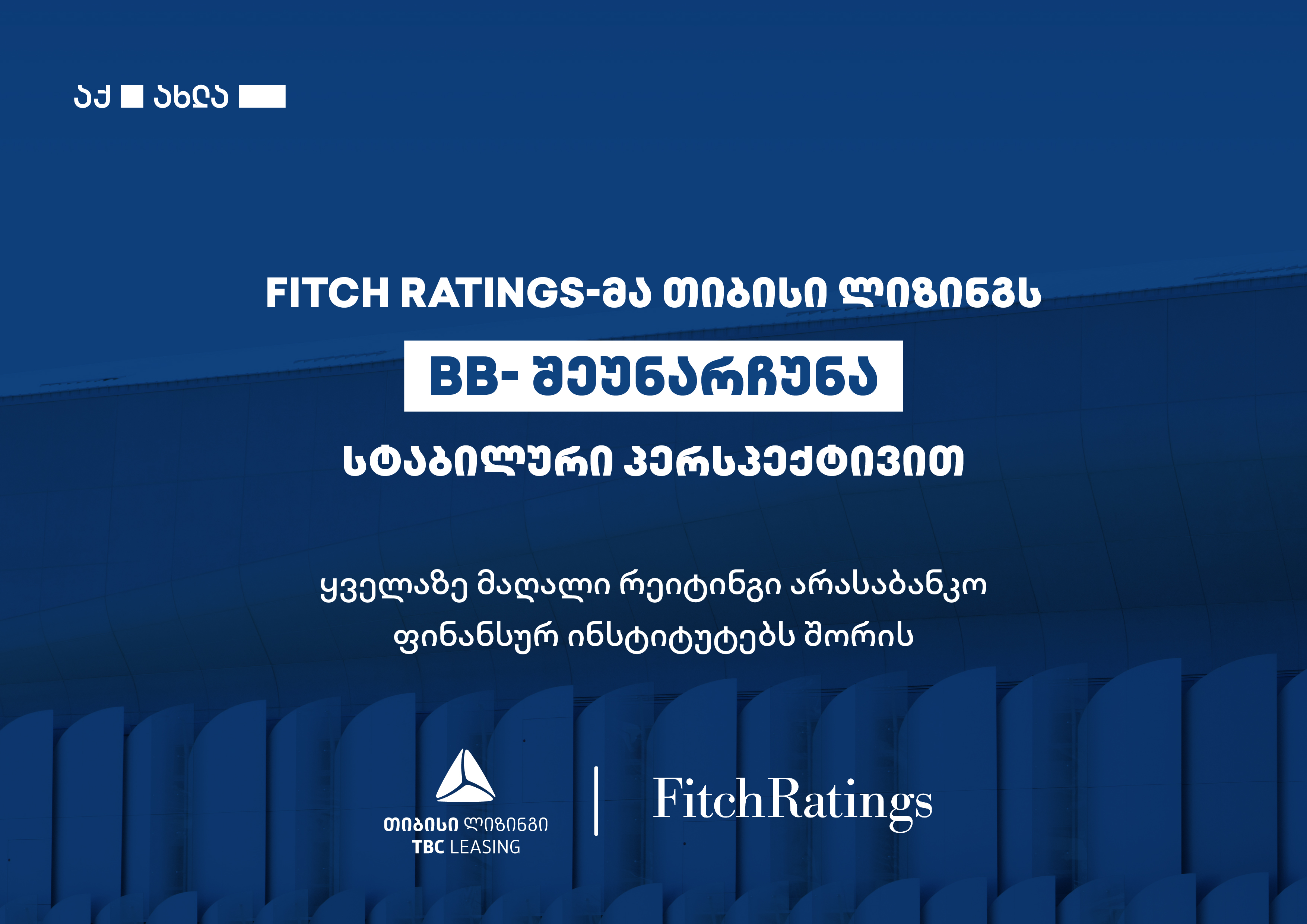 Fitch Ratings-მა „თიბისი“ ლიზინგს „BB-„ სტაბილური პერსპექტივით შეუნარჩუნა