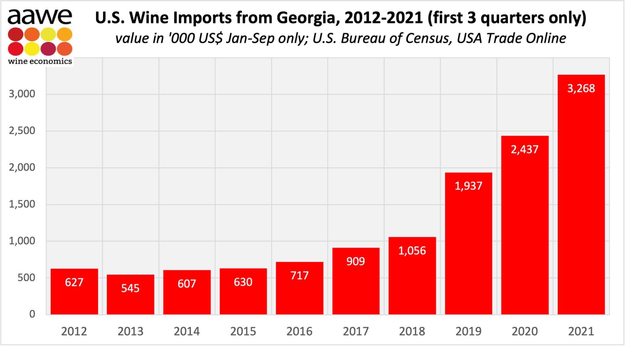 ბოლო 9 წლის განმავლობაში, აშშ-ში ქართული ღვინის იმპორტი 5-ჯერ გაიზრდა - AAWE
