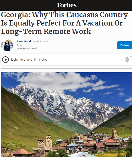 Forbes - საქართველო ტურისტებისა და დისტანციურად მომუშავეთათვის იდეალური მიმართულებაა