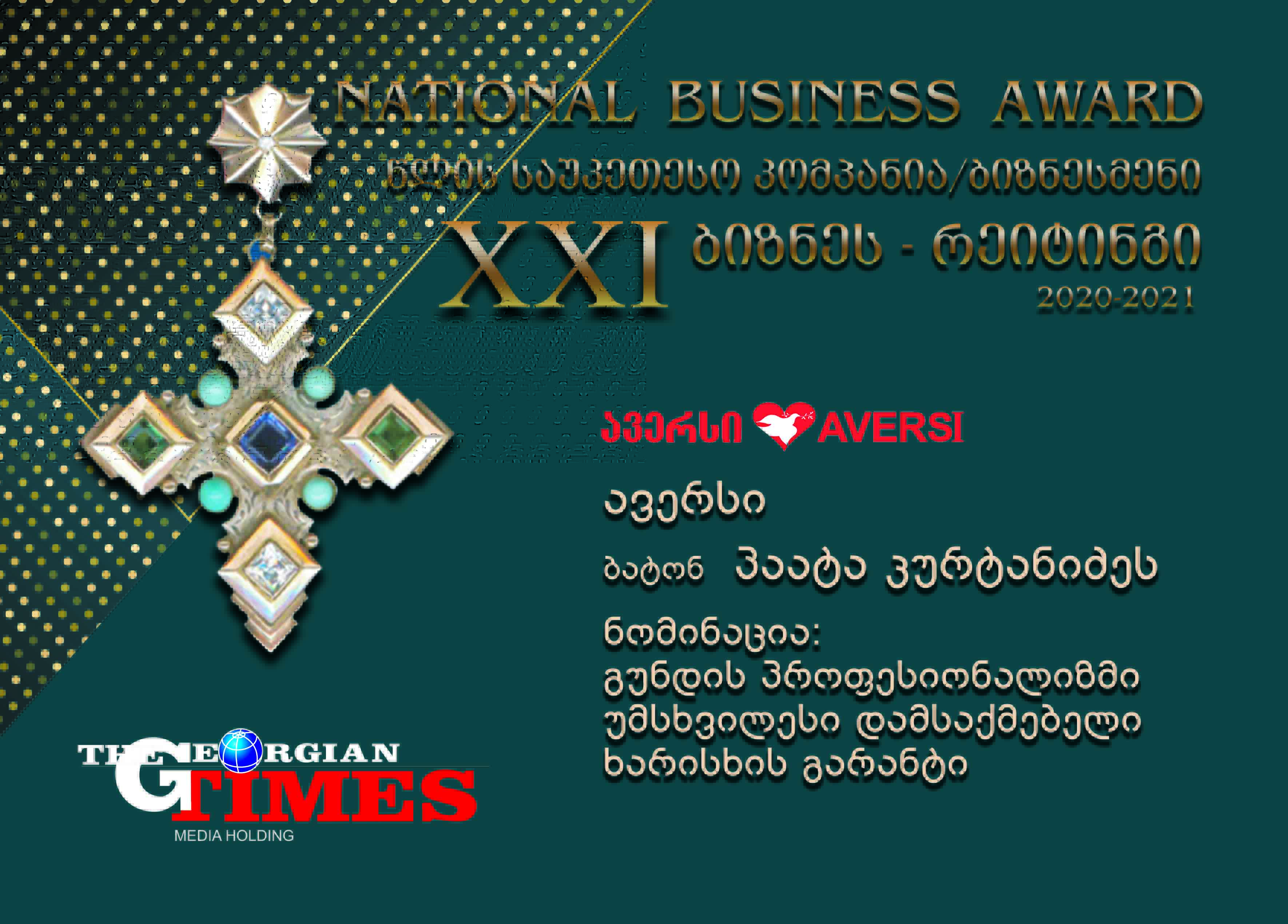 „ავერსმა“ „ჯორჯიან თაიმსის“ ბიზნესრეიტინგის 21-ე დაჯილდოებაზე მორიგ წარმატებას მიაღწია