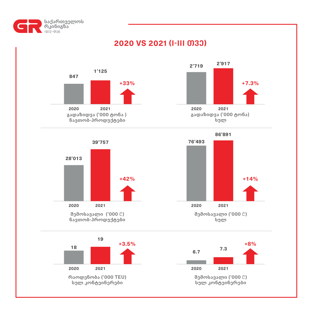 საქართველოს რკინიგზის სატვირთო გადაზიდვების მაჩვენებლები იზრდება