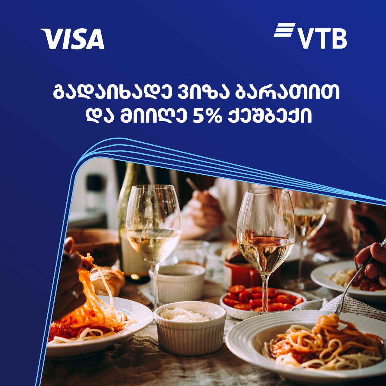 5% CASHBACK საკვებ ობიექტებში „ვითიბი ბანკის“ Visa ბარათით გადახდისას